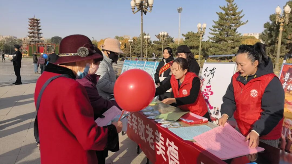 10月29日上午,張掖市慈善協(xié)會(huì)參加市、區(qū)民政部門在中心廣場(chǎng)舉行的集中宣傳活動(dòng)。通過(guò)懸掛橫幅、設(shè)置展板、量血壓、發(fā)放宣傳冊(cè)等形式,宣傳《慈善法》,普及老年人防詐騙與各項(xiàng)惠老政策,吸引眾多市民駐足觀看,有效提升了公眾對(duì)重陽(yáng)節(jié)和敬老文化的認(rèn)識(shí)和關(guān)注。